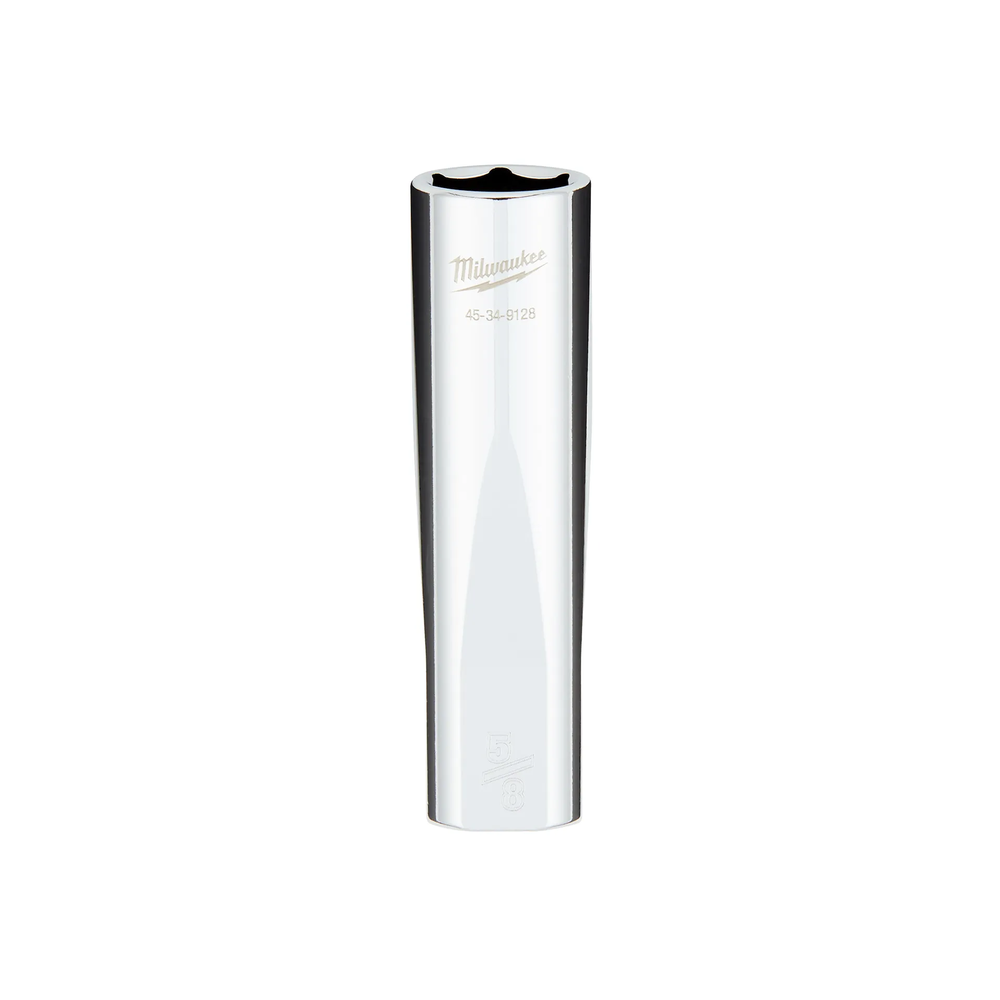 The Milwaukee 1/2' Drive 5/8' SAE 6-Point Deep Socket is engineered from the ground up to be part of the most versatile socket family. Featuring an innovative FOUR FLAT design, this socket is wrench-ready and resists rolling when placed on slanted work surfaces. The stamped size markings provide permanent, easy-to-read visibility even in harsh jobsite conditions, while the optimized geometry helps reduce fastener rounding and stripping.