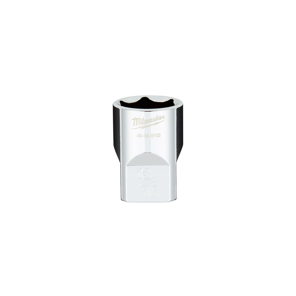 The MILWAUKEE 1/2' Drive 13/16' SAE 6-Point Socket with FOUR FLAT Sides is engineered from the ground up to provide maximum versatility and durability for professional users. Featuring an innovative design with four parallel flat sides, this socket effectively deters rolling on the jobsite and remains wrench-compatible for additional torque applications. The optimized socket geometry significantly reduces the risk of bolt rounding and stripping, while easy-to-read stamped markings ensure quick tool identification.