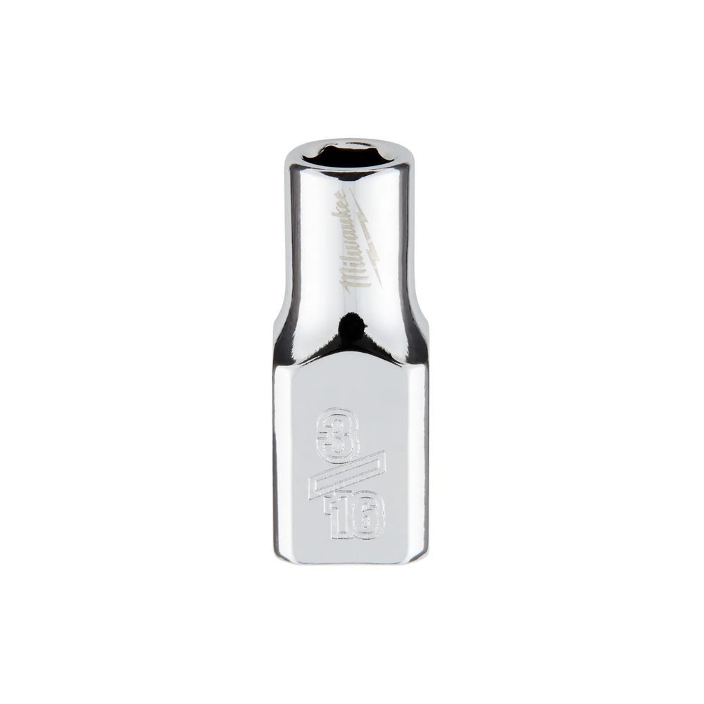 The Milwaukee 1/4' Drive 3/16' SAE 6-Point Socket is engineered from the ground up to provide maximum versatility and performance in fastening applications. It features an innovative design with four parallel flat sides that prevent the socket from rolling away on flat surfaces and allow for wrench-compatibility when extra torque is needed. This durable socket is constructed with optimized geometry to significantly reduce bolt rounding and stripping during heavy use.