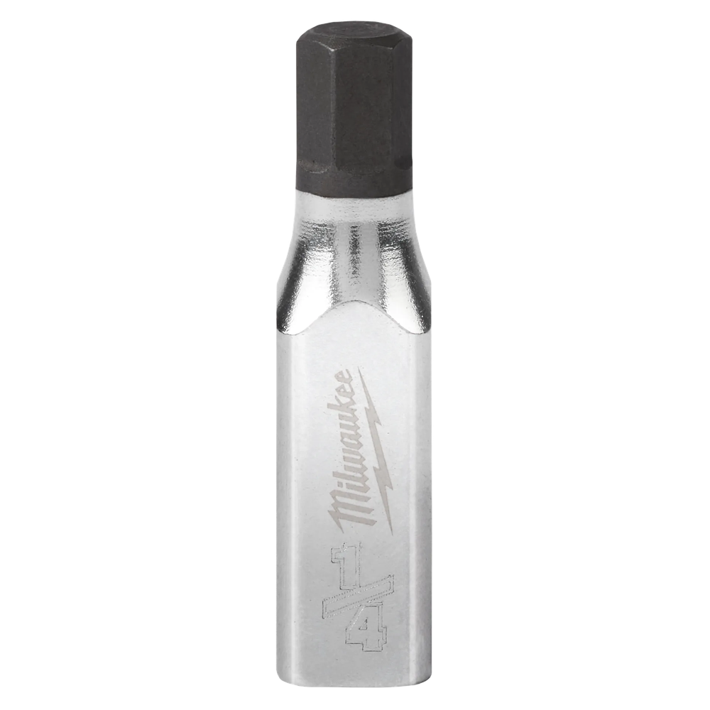 The Milwaukee 45-34-1029 is a 1/4' Drive 1/4' Hex Bit Socket engineered for maximum versatility and durability on the jobsite. Featuring an innovative design with four parallel flat sides, this socket is built to deter rolling and is fully wrench-compatible for additional torque when needed. The slim profile ensures the best possible access in tight spaces, while the one-piece construction eliminates the risk of the bit separating from the base. Protected by a chrome finish and backed by a lifetime guarantee, it is a reliable addition to any professional mechanic's toolkit.