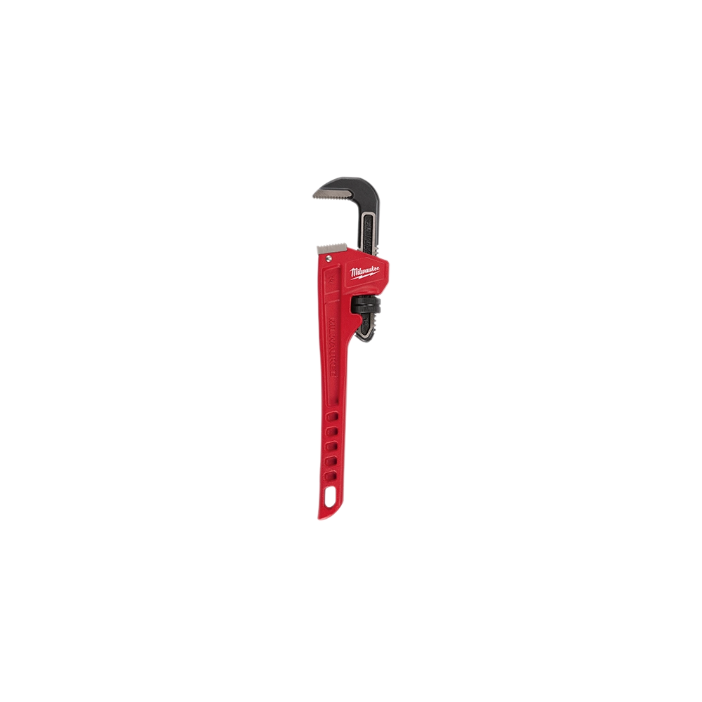 The Milwaukee 14 in. Steel Pipe Wrench has been designed from the ground up to offer maximum productivity and durability for the professional user. It features an innovative overbite jaw design that provides the largest gripping surface available, ensuring a secure hold on various workpieces. The ergonomic handle is specifically shaped for maximum comfort and will not dig into the palms during heavy use. This tool is built to withstand tough jobsite conditions with its through-hardened jaws and dual coil springs.