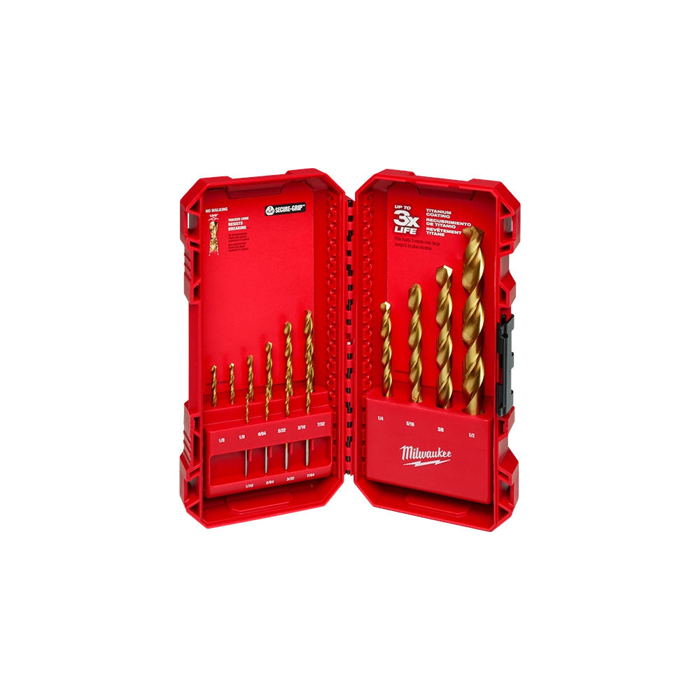 Experience extreme durability and extended performance with the Milwaukee 14-Piece Thunderbolt Titanium Drill Bit Set. Designed for professional use, these bits feature a titanium coating that reduces heat buildup for up to three times longer life and a thicker Thunderbolt web for superior strength and resistance to breakage. The parabolic flute design ensures rapid chip and debris clearance, keeping the bits cool, while the 135-degree split point tip provides precise, walk-free starts on a variety of materials including wood, metal, and PVC. This set offers a versatile range of sizes, making it an essential addition to any professional or DIY toolkit.