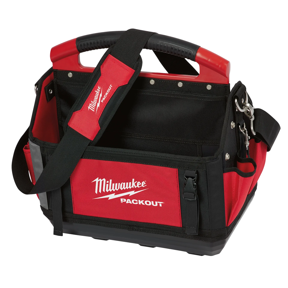 The Milwaukee 15' PACKOUT Tote is a professional-grade tool storage solution designed for maximum durability and organization on the jobsite. Built as part of the versatile PACKOUT modular storage system, it features an impact-resistant molded base that connects seamlessly with other components. This tote is engineered to withstand harsh environments using rugged ballistic material and heavy-duty metal hardware.