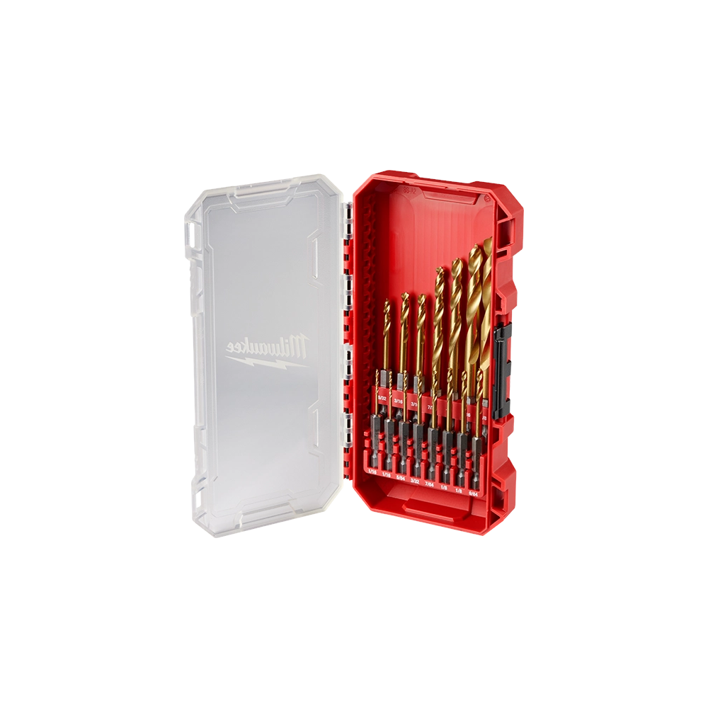 The MILWAUKEE SHOCKWAVE Impact Duty 15PC RED HELIX Titanium Drill Bit Set is engineered for extreme durability and long life. The QUAD EDGE tip provides a precision start and features four cutting edges to create smaller chips for faster material removal and less heat, leading to improved performance. These drill bits are designed with a VARIABLE HELIX flute that starts with an aggressive 35 angle and ends at 15 for rapid chip removal. Ideal for applications in wood, plastics, and metals, these bits provide up to 5 times the life compared to black oxide drill bits.