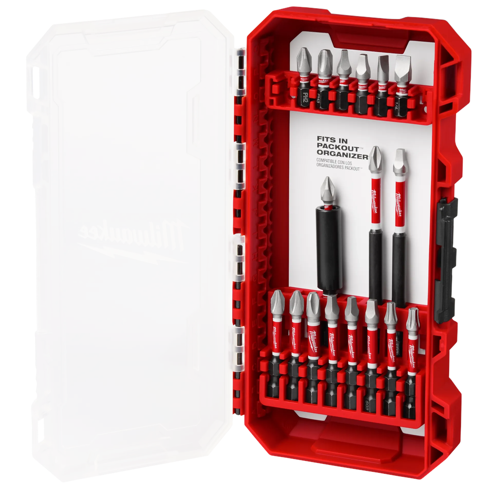 The Milwaukee 48-32-4403 SHOCKWAVE Impact Duty 18-Piece Driver Bit Set is engineered for extreme durability and the best fit on the market. These bits feature an optimized SHOCKZONE design that absorbs peak torque and prevents breaking, providing up to 50X the life of standard impact bits. The Wear Guard Tip ensures increased wear resistance, protecting the fit over the entire lifespan of the tool. Designed for high-torque applications, this set is ideal for professional job site use and integrates seamlessly with PACKOUT modular storage systems.