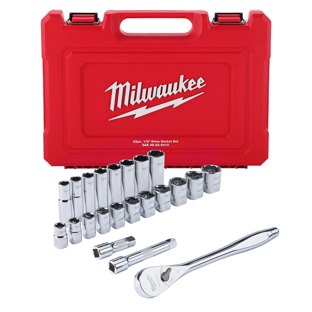 Milwaukee 22-Piece SAE 1/2 inch Drive Ratchet & Socket Set