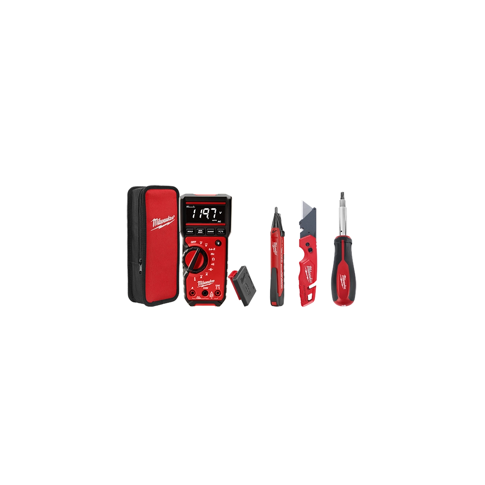 The Milwaukee 2220-20 Electrical Combo Kit is a comprehensive four-tool solution designed for professional electricians working in residential, commercial, or industrial environments. This kit pairs high-performance testing instruments with essential hand tools to provide a complete workflow for electrical installation and troubleshooting. Each component is built with the rugged durability and accuracy required for heavy-duty jobsite use.