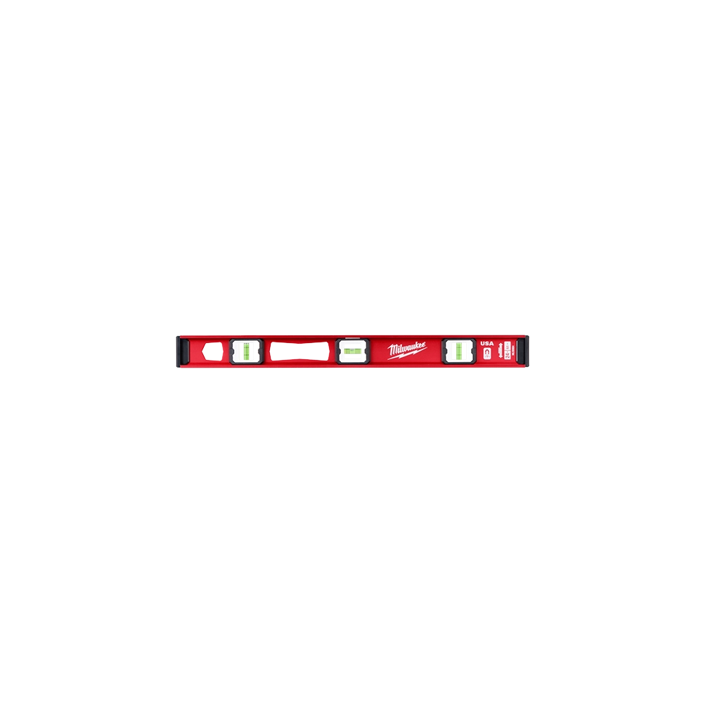 The Milwaukee 24' Magnetic I-Beam Level (MLIBM24) is a best-in-class leveling solution designed to withstand the most demanding job site conditions. Featuring a 40% thicker all-metal frame, this level offers superior durability and protects measurement accuracy while remaining lightweight for easy transport between tasks. The integrated high-contrast vial surrounds ensure maximum visibility in various lighting conditions, and the strong magnetic edge provides a secure, hands-free hold on ferrous surfaces. This tool is ideal for professionals requiring precision, offering .0005'/inch accuracy in all working positions.