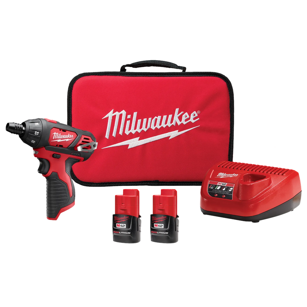 The Milwaukee 2401-22 M12 1/4' Hex Screwdriver Kit is a compact and powerful solution optimized for professional precision fastening applications. Delivering 175 in-lbs of torque and a 0-500 RPM range, this tool provides the necessary power and speed for demanding jobsite tasks in a portable package. Its lightweight, 2.0-lb design and ergonomic grip allow for extended use in confined spaces without sacrificing comfort or control.