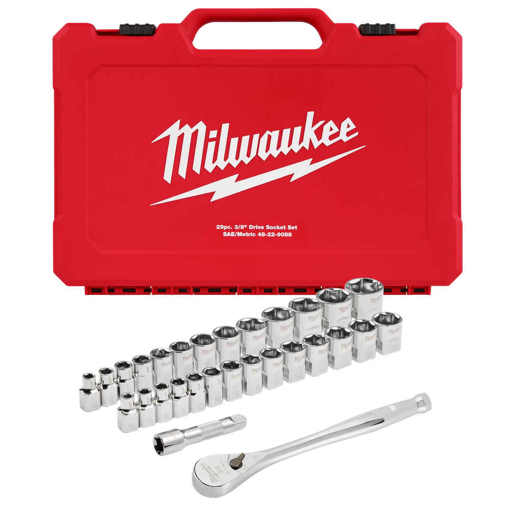 Milwaukee 29pc 3/8 inch Drive Metric & SAE Ratchet and Socket Set