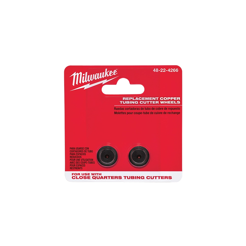 The Milwaukee 48-22-4266 replacement cutter wheels are engineered for professional durability and precision performance. Constructed from high carbon steel, these blades are specifically designed to provide a long service life and a clean, sharp cut every time. They are optimized for cutting various types of copper tubing, making them an essential accessory for plumbing and HVAC professionals using Milwaukee Close Quarters Tubing Cutters.