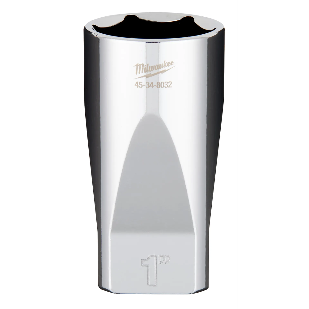 The Milwaukee 45-34-8032 is a premium 3/8' drive deep well socket engineered from the ground up to provide maximum versatility and durability on the jobsite. It features Milwaukee's innovative FOUR FLAT geometry, which incorporates four parallel flat sides to prevent the tool from rolling on uneven surfaces and provides a wrench-compatible surface for extra leverage. This socket is constructed from high-strength chrome vanadium steel with a professional-grade chrome finish, ensuring long-term resistance to corrosion and wear. Optimized for performance, the 6-point geometry grips fasteners by the flats rather than the corners, significantly reducing the risk of rounding and stripping.