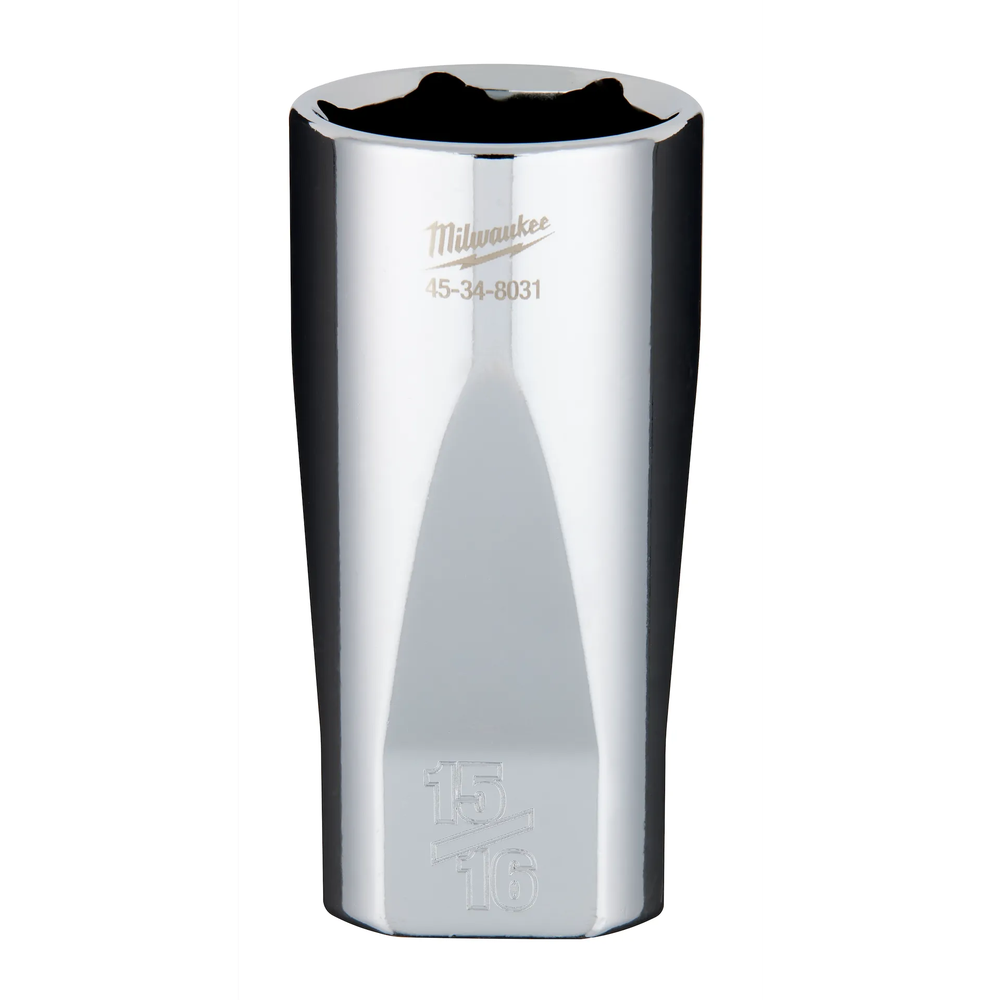Milwaukee's 3/8' Drive 15/16' Deep Socket with FOUR FLAT Sides is engineered from the ground up to be part of the industry's most versatile socket family. These sockets feature an innovative design with four parallel flat sides that deter rolling on uneven surfaces and provide a wrench-compatible interface for high-torque applications. Each socket is constructed with optimized geometry to significantly reduce bolt rounding and stripping, ensuring long-term reliability. Backed by a lifetime guarantee, this deep-well socket is a durable and essential addition to any professional mechanic's tool set.