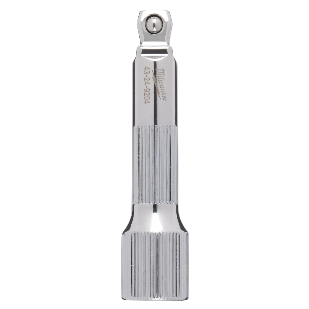 The Milwaukee 3/8' Drive 3' Wobble Extension is engineered to provide professional users with maximum control and superior access in tight or awkward applications. This versatile accessory features a unique dual-function design that allows it to be used as both a standard extension or a wobble extension, offering up to 15 degrees of movement for improved reach. It is equipped with the industry's largest knurling surface on both the shaft and female drive end, ensuring precision control when hand-tightening or working with oily materials. Built with durable chrome vanadium steel and finished with protective chrome plating, this tool is designed to withstand the rigors of the jobsite and is backed by a lifetime guarantee.