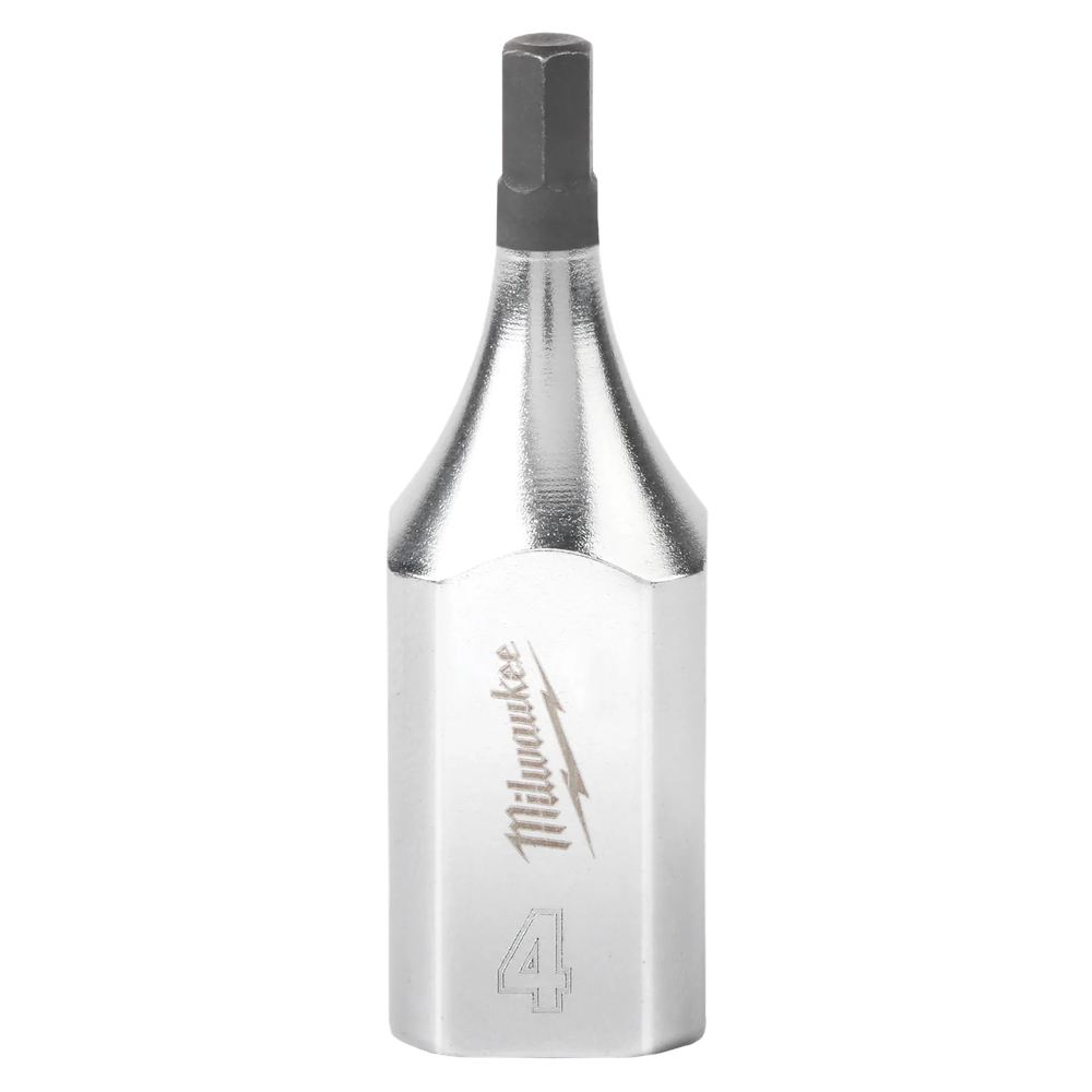 The Milwaukee 3/8' Drive 4mm Hex Bit Socket (45-34-1050) is engineered for maximum versatility and durability in demanding mechanical applications. Part of a comprehensive line of mechanic tools, this socket features an innovative design with FOUR FLAT sides to deter rolling and provide a wrench-ready surface for additional leverage. Its one-piece construction significantly enhances durability over traditional two-piece designs by eliminating the risk of the bit separating from the socket base. This high-quality tool provides superior access in tight spaces and is backed by Milwaukee's lifetime guarantee.