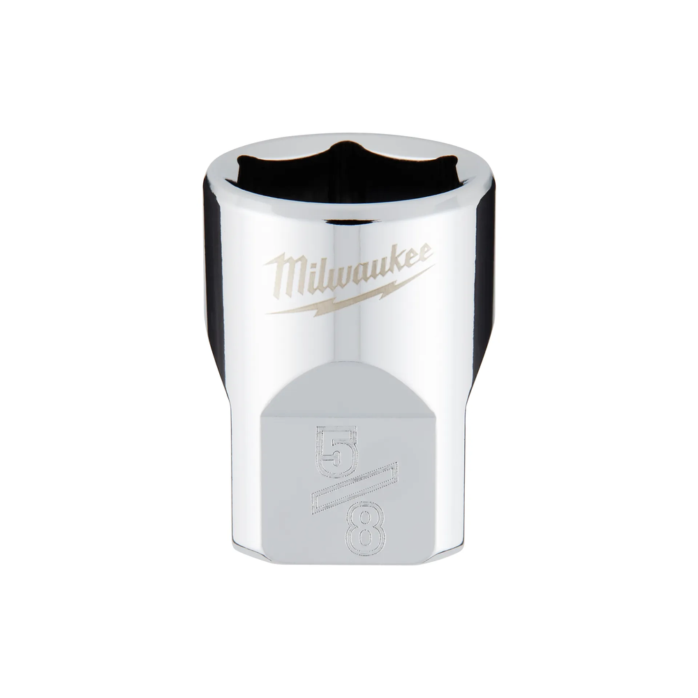 The Milwaukee 3/8-inch Drive 5/8-inch SAE 6-Point Socket is designed from the ground up to offer unmatched versatility and performance on the jobsite. Its innovative FOUR FLAT side design not only prevents the tool from rolling away on flat surfaces but also allows for wrench-compatibility when extra leverage is required. Engineered with optimized internal geometry, this socket minimizes the risk of rounding or stripping bolts, while the stamped sizes on the flats ensure easy identification even in low-light environments.