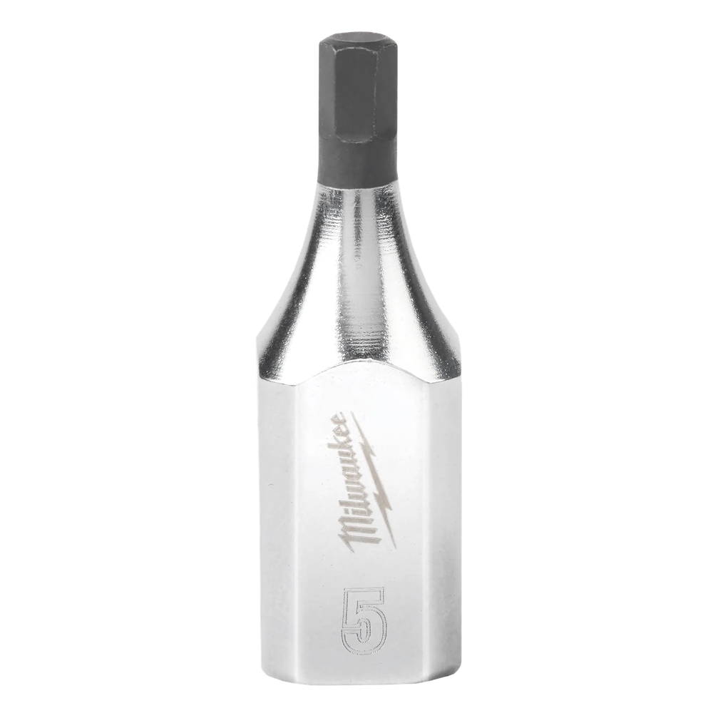 The Milwaukee 45-34-1051 is a professional-grade 3/8' drive 5mm hex bit socket designed for maximum versatility and durability in demanding work environments. It features innovative FOUR FLAT sides that prevent the tool from rolling away on flat surfaces while providing a wrench-ready design for situations requiring additional leverage. The slim profile ensures excellent access in confined spaces, and the robust one-piece construction eliminates the common risk of bit separation found in multi-piece designs. Finished with a high-quality chrome plating and laser-engraved markings, this socket is built for long-term rust resistance and quick identification.