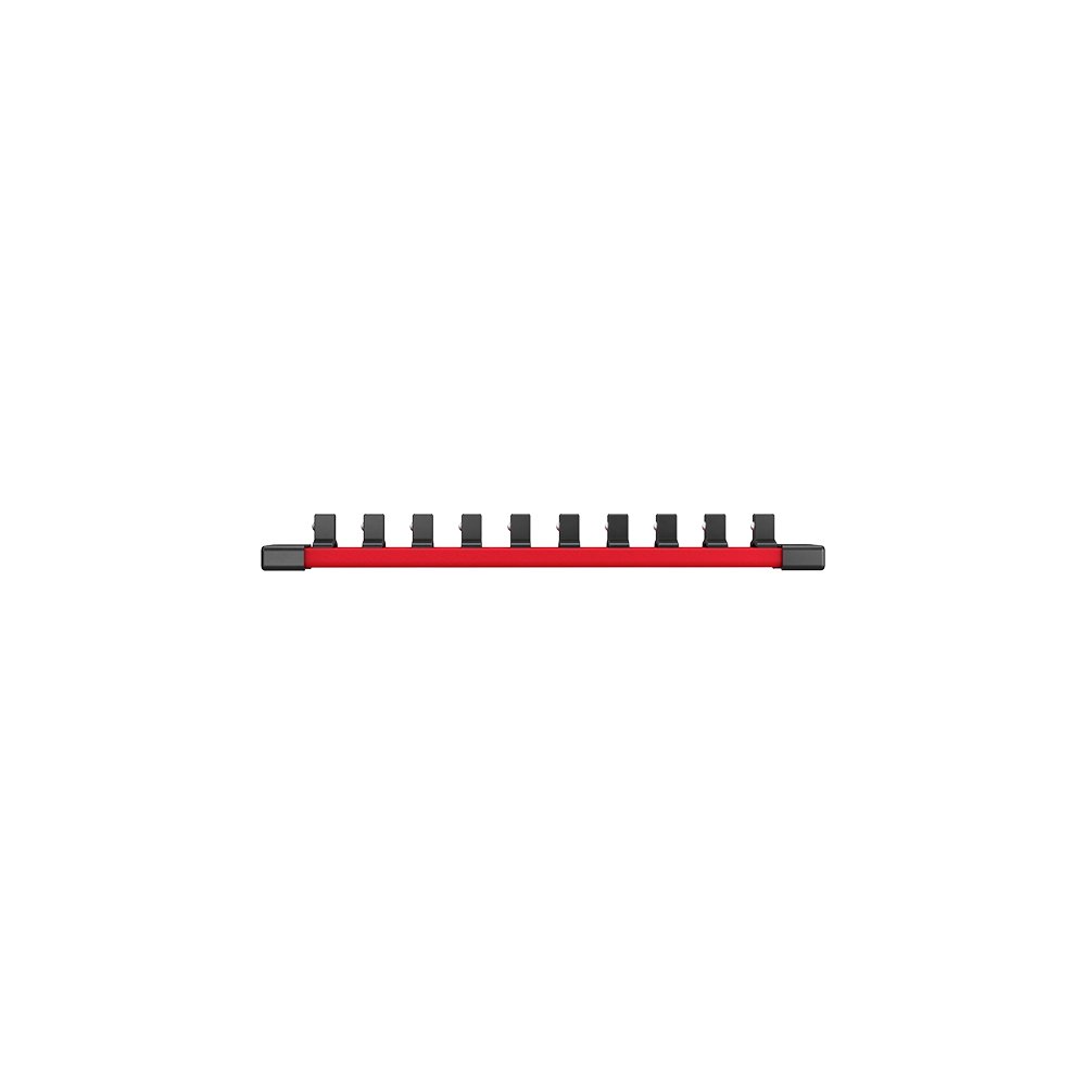 Organize your sockets with the versatile Milwaukee 3/8' Drive Socket Rail. This modular system features interchangeable clips, allowing for customized storage of both chrome and impact sockets. Its robust design ensures sockets stay securely in place, whether in transit or mounted, making it an efficient addition to any professional shop or personal toolkit.