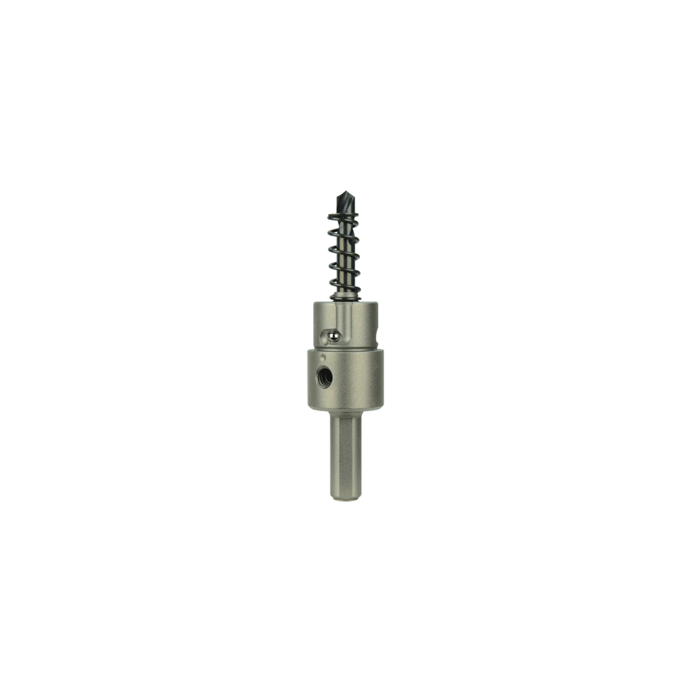 The Milwaukee 49-57-0035 is a versatile 3/8' shank quick-change adapter designed specifically for sheet metal and steel plate cutters. This adapter allows for rapid and easy swapping of cutter heads with a simple push and turn, enhancing user productivity on the job. It is engineered to produce fine holes in materials up to 3/16' thick, including stainless steel and structural steel studs, and also improves efficiency when working with brass and aluminum. The quick-change design, coupled with features like a detachable drill cap and ejector spring, makes it a valuable accessory for achieving drill press quality holes with handheld drills. Lubrication during drilling is recommended to extend carbide life, with Milwaukee suggesting their Hawg Wash cutting fluid for optimal results.