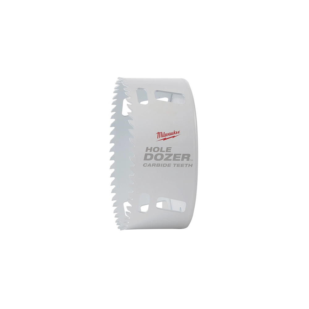 Experience unmatched durability and cutting performance with the Milwaukee HOLE DOZER with Carbide Teeth Hole Saw. Engineered with a 3 TPI design, this hole saw delivers fast cuts and exceptional longevity, outperforming traditional bi-metal options. It excels in general purpose and extreme materials, effortlessly cutting through stainless steel, cast iron, fastener-embedded wood, cement board, fiberglass, and more. The deep gullets ensure efficient material clearing, while the innovative ALL-ACCESS SLOTS simplify plug removal, minimizing downtime and maximizing productivity. Its advanced slot design also enhances pilot visibility for precise cuts and promotes faster chip ejection to keep the cut cool.