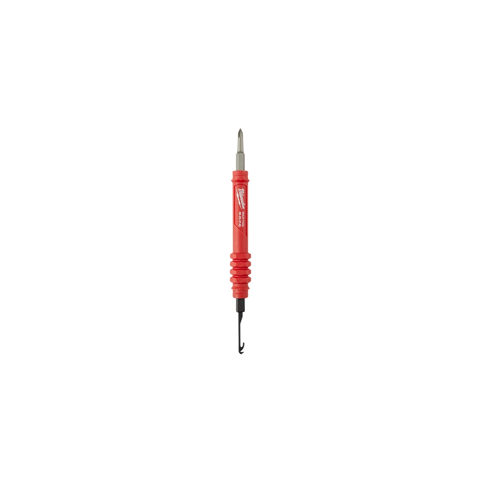 The Milwaukee 4-in-1 Multi Pick is a specialized hand tool designed for data communication and electronics professionals who need versatility in a compact form factor. It combines four essential applicationsa wire hook, a non-metallic spudger, and a double-ended precision screwdriverinto a single durable tool to minimize the need for multiple accessories on the job. This tool is ideal for tasks such as seating wires, pulling cable through terminals, and prying sensitive components without causing damage.