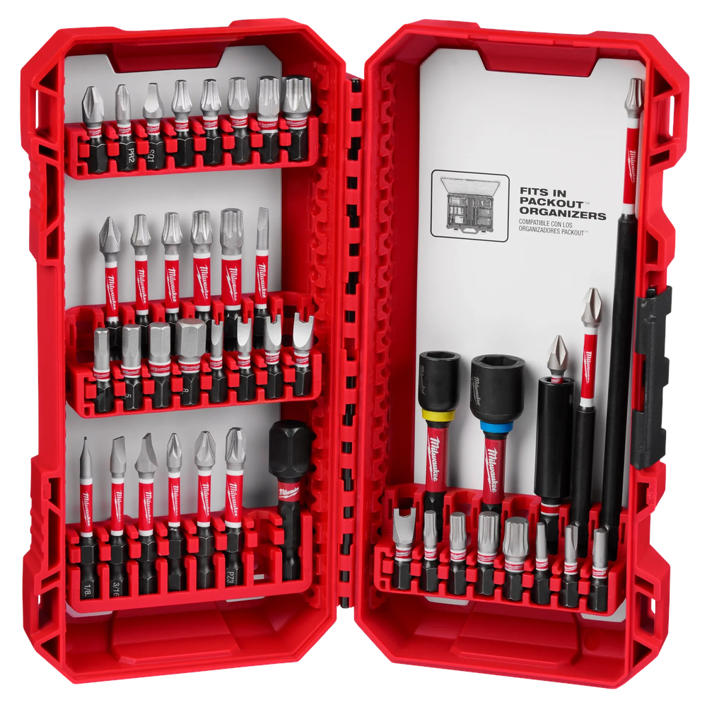The Milwaukee 48-32-4033 SHOCKWAVE Impact Duty 43-Piece Driver Bit Set is engineered to be the most durable and best-fitting driver bits on the market, specifically optimized for automotive and mechanical applications. Utilizing Custom Alloy76 steel and a proprietary heat treatment process, these bits provide up to 50X the life of standard impact bits while maintaining a precise fit to prevent stripping and wobble. The set is organized in a customizable accessory case designed for seamless integration into the Milwaukee PACKOUT storage system, ensuring your tools stay organized and accessible on the job.