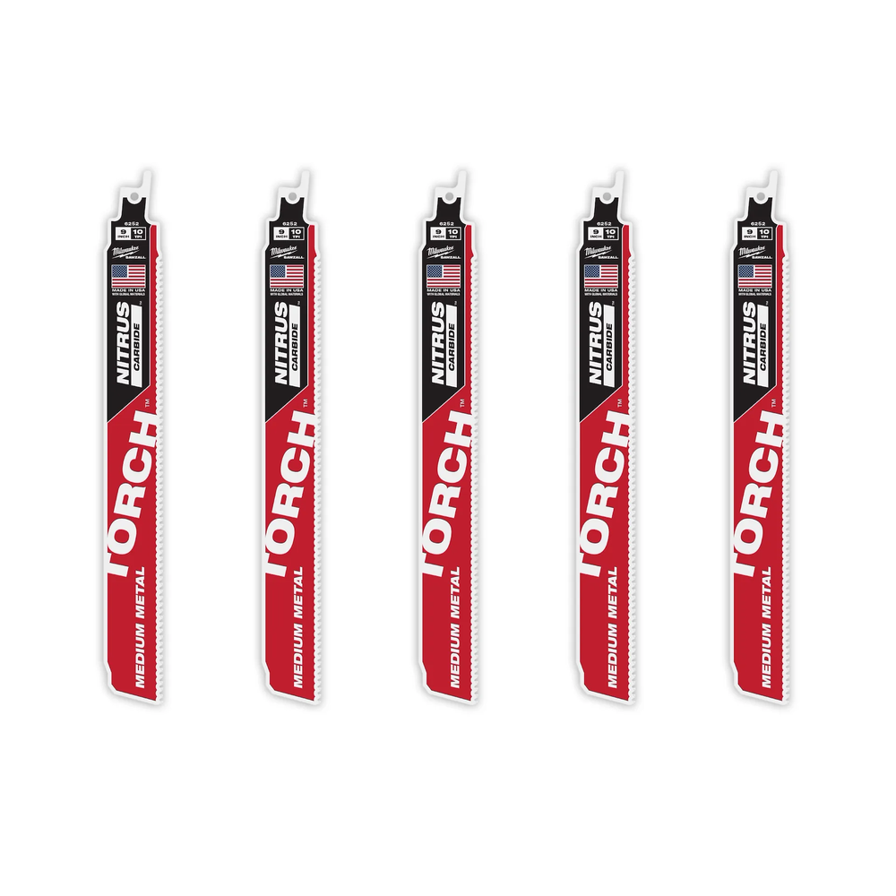 (5) 9' 10 TPI TORCH with NITRUS Carbide Teeth SAWZALL Blades