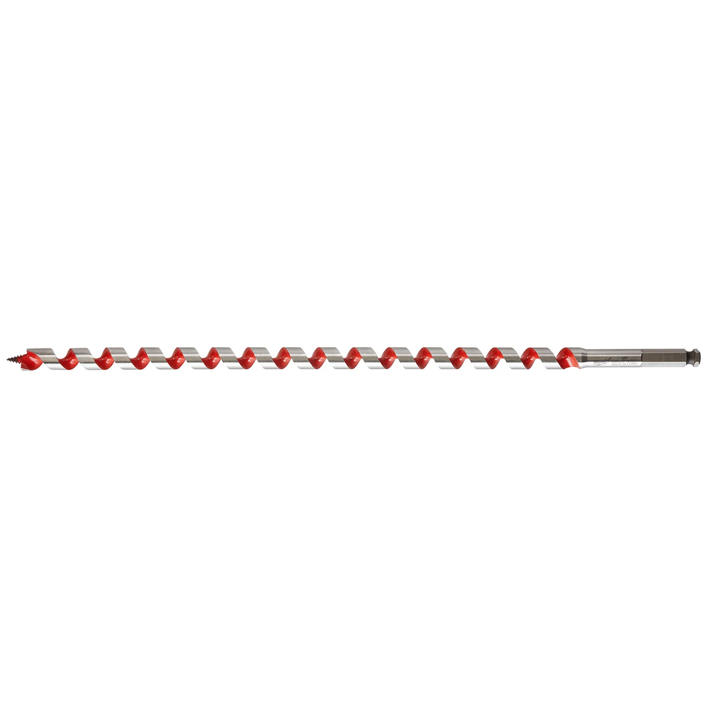 Drill deep, clean holes in wood with the Milwaukee 48-13-5620 Ship Auger Bit. Designed for heavy-duty drills or right-angle drills, this 5/8' diameter, 18' long bit is ideal for penetrating thick beams, posts, or planking in a single pass. Its self-feeding screw tip pulls the bit into the wood, while aggressive, coated flutes efficiently eject chips, preventing clogs and ensuring faster, easier work. This bit is perfect for electricians, plumbers, carpenters, and DIYers tackling tasks like running wiring, installing pipes, or timber framing. The induction-hardened tip offers enhanced nail resistance, and the impact-rated shank provides durability for demanding applications.
