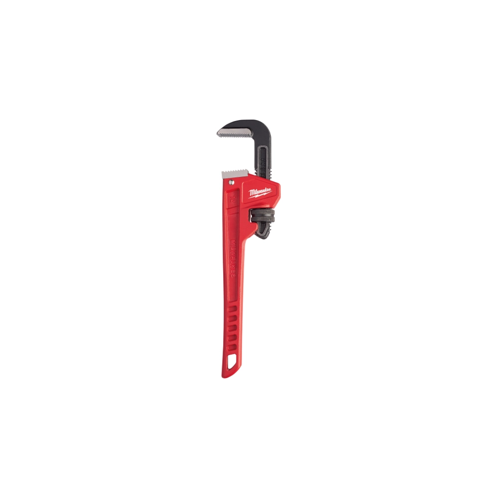 The Milwaukee 48-22-7112 is a 12-inch steel pipe wrench engineered to deliver professional-grade productivity and long-term durability on the jobsite. It features an innovative Overbite Jaw design that offers the largest gripping surface available, ensuring a secure and powerful hold on pipes and fittings. The ergonomic handle is specifically shaped for maximum comfort, preventing the tool from digging into the user's palm during high-torque applications.
