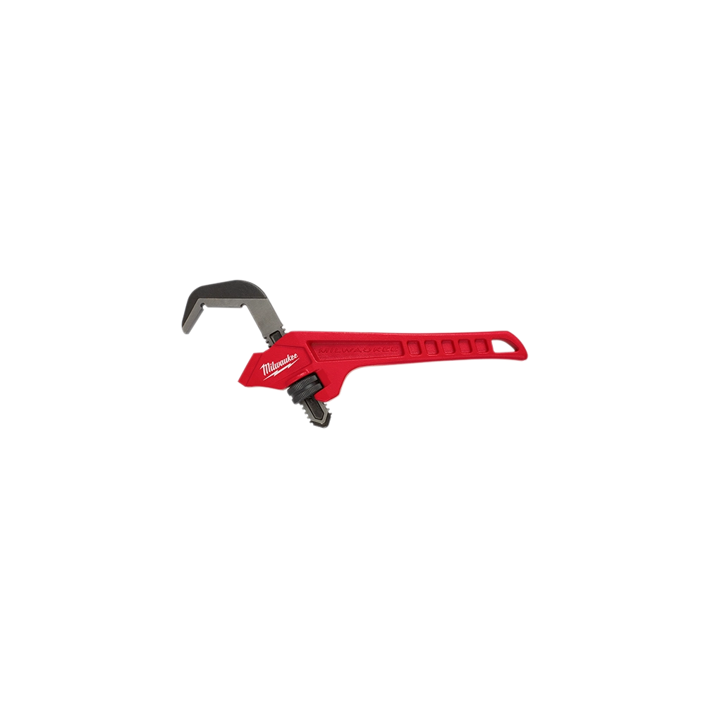The Milwaukee 48-22-7171 Steel Offset Hex Pipe Wrench is engineered from the ground up to provide professional users with maximum productivity on the job. This specialized tool features smooth jaws designed specifically to prevent marring on finished surfaces while maintaining a secure grip during use. With its offset jaw design, users gain better access to tight spaces and benefit from up to three points of contact for a reliable hold. The ergonomic handle is shaped to provide maximum comfort and prevent the tool from digging into the user's palm during high-torque applications.