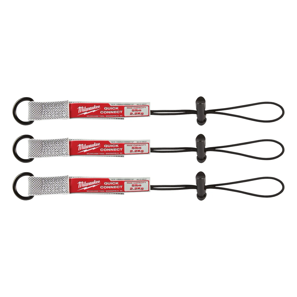 The Milwaukee 48-22-8822 is a 3-piece set of small quick-connect accessories designed for use with the Milwaukee Quick-Connect Locking Tool Lanyard system. Contrary to being a communication device, these accessories are specialized tool tethering components intended to enhance safety and productivity when working at heights. Each accessory is rated for tools up to 5 lbs and features a shock-absorbing design to gradually slow a tool in the event of a drop, reducing the risk of injury and property damage.