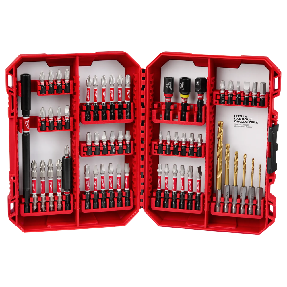 The MILWAUKEE SHOCKWAVE Impact Duty 60PC Drill & Drive Set is engineered to be the most durable and best-fitting driver bit set on the market. Featuring advanced Wear Guard Tip technology, these bits provide increased wear resistance and protect the fit over the life of the tool. Each bit is constructed from proprietary Custom Alloy76 steel and treated with a specialized heat process to deliver up to 50X longer life compared to standard impact bits. This versatile professional set is organized in a customizable accessory case that is fully compatible with the Milwaukee PACKOUT modular storage system.