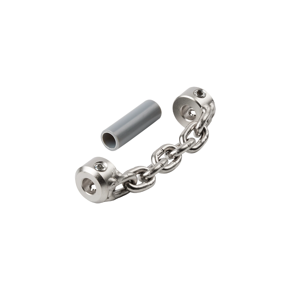 The Milwaukee 1-1/2' Standard Chain Knocker, part number 48-53-3020, is designed for the M18 FUEL High Speed Chain Snake, delivering a thorough wall-to-wall clean effective against grease and soft blockages. This tool is particularly well-suited for use in PVC, clay, or fragile pipes. Its durable steel construction ensures it can handle tough clogs in 1-1/2' lines, and it features stainless steel set screws for enhanced corrosion resistance. The chain knocker is also designed to navigate tees and bends within pipes. It is compatible with competitive 5/16' flexible shaft machines.