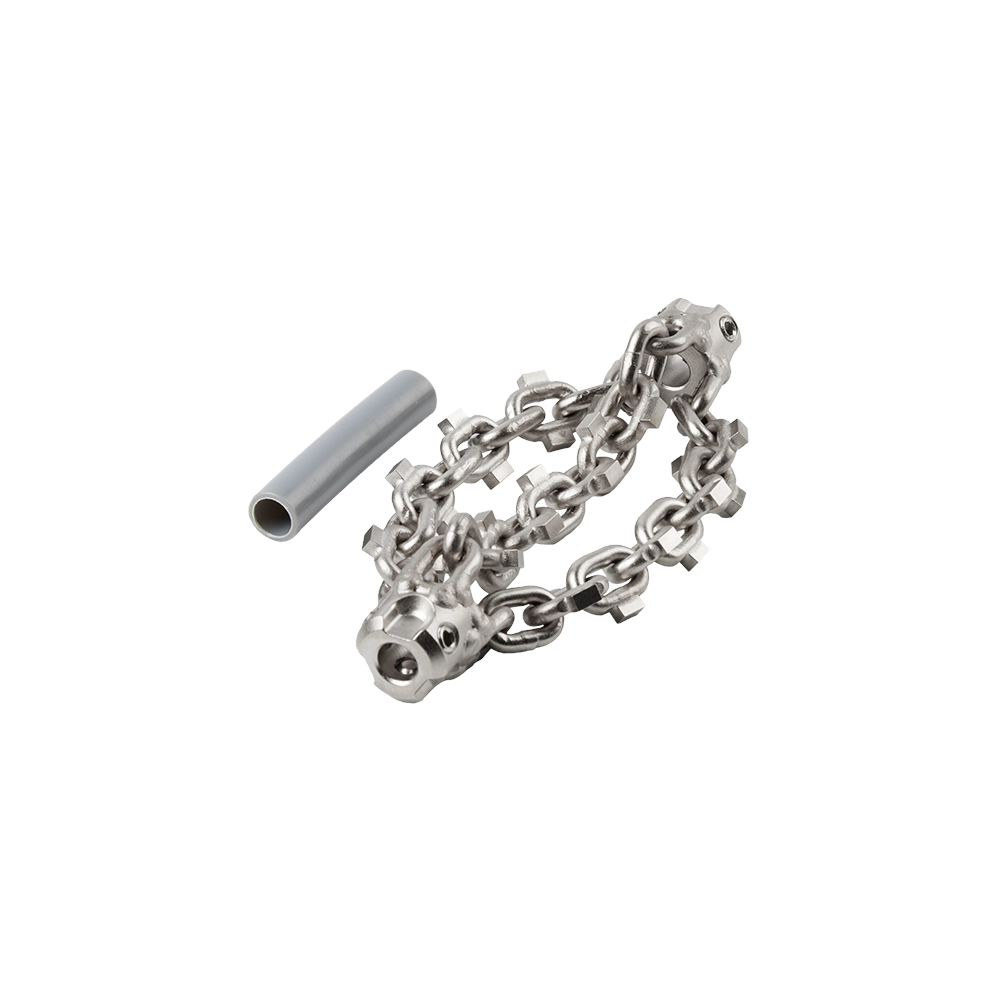 The Milwaukee 3' Carbide Chain Knocker is designed for use with the M18 FUEL High-Speed Chain Snake, providing a comprehensive solution for clearing stubborn pipe blockages. It excels at tackling scale build-up, hard deposits, and grease, delivering a thorough wall-to-wall clean. Optimized for use in cast iron and other hard-walled pipes, its durable construction ensures long-lasting performance and effectiveness against tough clogs. This chain knocker is engineered to navigate tees and bends, making it a versatile tool for various plumbing challenges.