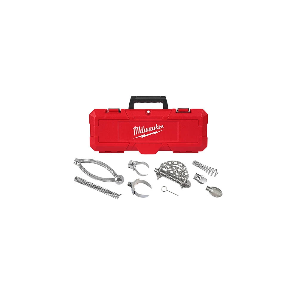 The Milwaukee 48-53-3839 Head Attachment Kit is designed to tackle common clogs in medium drain lines ranging from 2 to 4 inches in diameter. Crafted from durable steel with RUST GUARD plating, this kit offers enhanced corrosion resistance for longevity. It provides all the essential tools for efficient and effective drain clearing, making it an indispensable addition to your plumbing toolkit. This kit is engineered to work seamlessly with Milwaukee's 7/8' sectional cables.