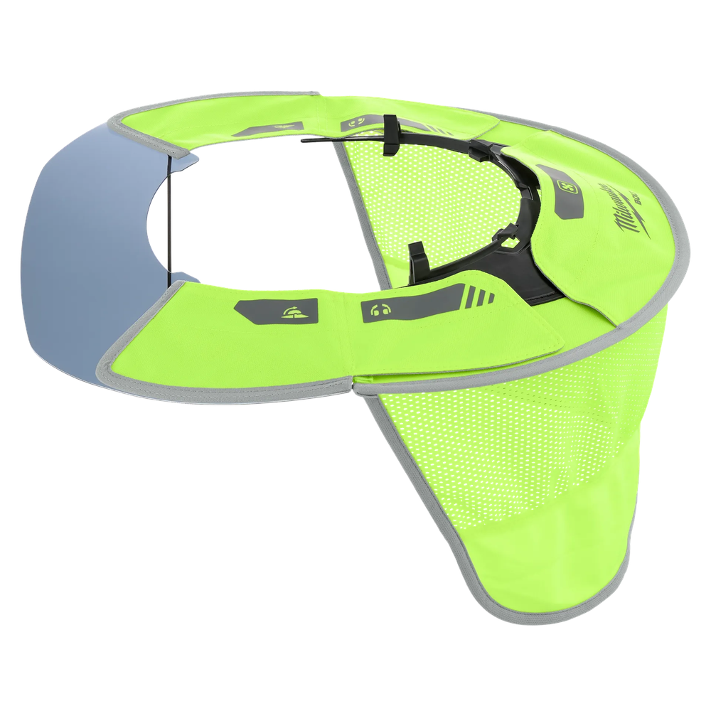 The Milwaukee BOLT Sun Visor with Sunshade provides comprehensive 360 UV protection and is designed for everyday wear. It easily clips into any Milwaukee Safety Helmets and Hard Hats, offering a tinted brim to reduce glare without obstructing upward vision. The breathable mesh portion ensures comfort, while the front visor can be flipped back to accommodate face shields or eye protection, allowing for simultaneous use of multiple accessories. This accessory enhances safety and productivity by keeping you cool and protected from harmful UV rays.