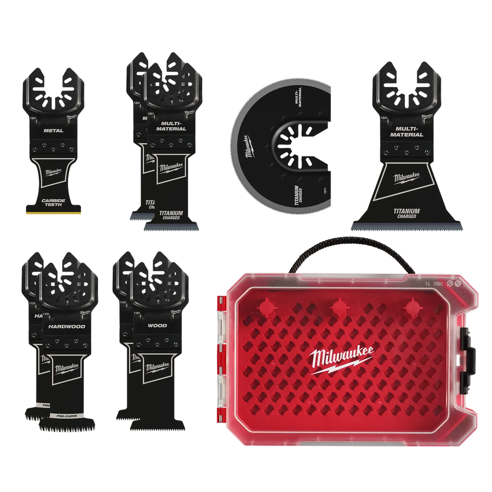 Milwaukee's Universal Fit OPEN-LOK 9-Piece Oscillating Multi-Tool General Purpose Variety Pack provides a versatile assortment of high-performance blades for various cutting tasks. This set is engineered to maximize efficiency and minimize downtime, offering specialized blades for different materials and applications. From aggressive cutting in extreme metals to clean finishes in hardwood, this kit ensures you have the right tool for the job. Each blade features the OPEN-LOK anchor system for quick, tool-free changes and a secure connection across a wide range of multi-tools.