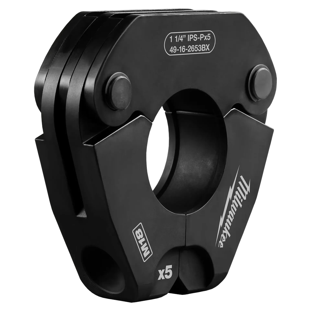 The Milwaukee 1-1/4' IPS-P Pivoting Press Ring is engineered for use with M18 FORCE LOGIC Press Tools, offering a superior alternative to traditional welding and threading methods. This innovative press ring allows for efficient connections on schedule 5 up to schedule 40 black iron pipe and 304/316 stainless steel pipe. Its pivoting functionality provides enhanced access in confined spaces when paired with the appropriate ring jaw and M18 FORCE LOGIC Press Tools. Designed for compatibility with major fitting manufacturers like Viega MegaPress and Apollo PowerPress, it ensures quality and versatility in your plumbing and piping applications. Milwaukee's press blocking system further guarantees secure connections by preventing improper ring and jaw mismatches, leading to unmatched productivity and reliable, flameless joints.
