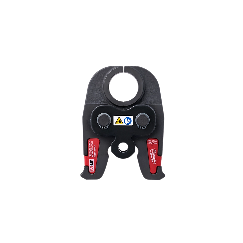 The Milwaukee 49-16-2656C is a 1-1/2' PEX Crimp Jaw specifically designed for use with M18 FORCE LOGIC Press Tools. This attachment offers a streamlined and efficient solution for making PEX crimp connections, significantly reducing the manual effort typically required with traditional tools. Its inline, one-handed design provides optimal access in tight spaces, enhancing maneuverability and speeding up installations in both residential and commercial plumbing applications. Engineered for durability and precision, it ensures absolute connection integrity for leak-free results. The spring-loaded jaw automatically grips the crimp ring for accurate alignment before the press cycle begins, and the M18 FORCE LOGIC Press Tool provides a visual indicator for completed crimps.