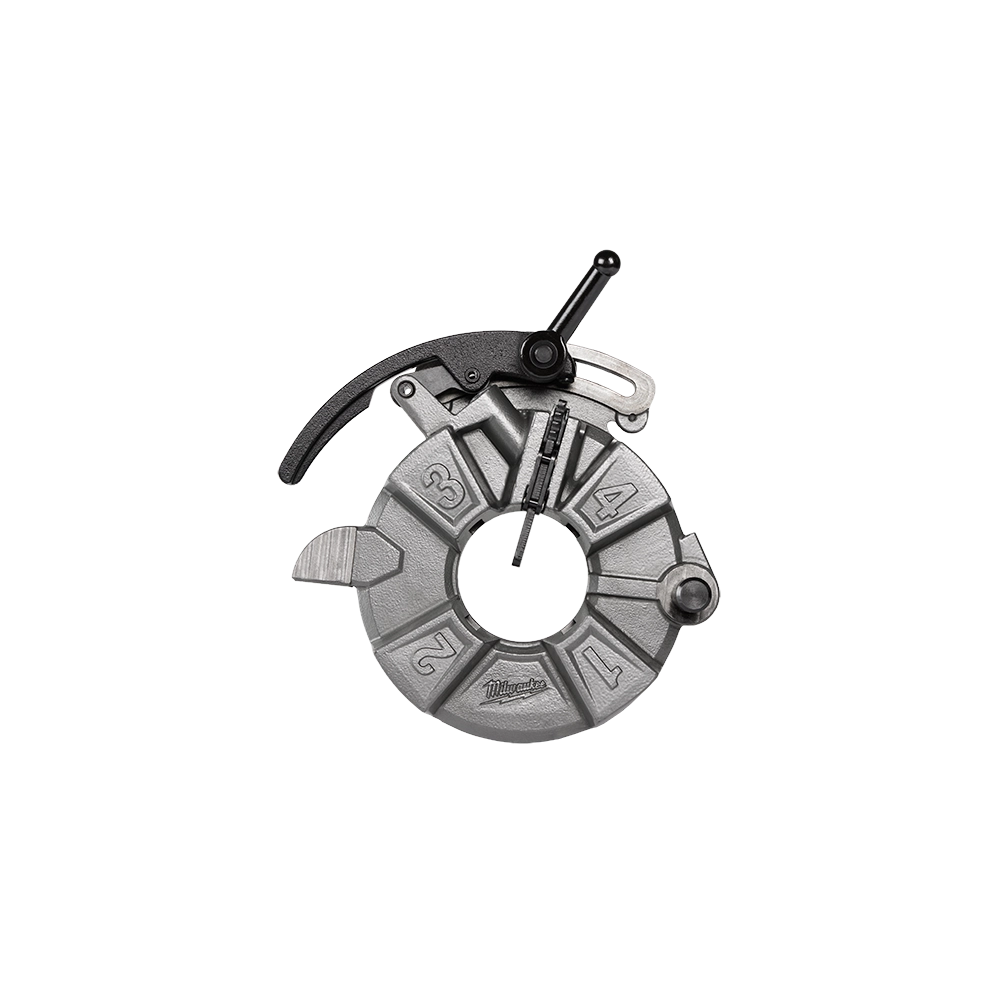 The Milwaukee 49-16-5100 NPT Pipe Threading Die Head with Micro-Adjust is designed to produce consistent threads efficiently, significantly decreasing production time. Its key innovation, the Micro-Adjust knob, allows for the easiest and most controlled thread adjustments, ensuring superior thread quality. Additionally, the Auto-Release function automatically disengages the dies once activated by the pipe, guaranteeing repeatable thread lengths for precise results.