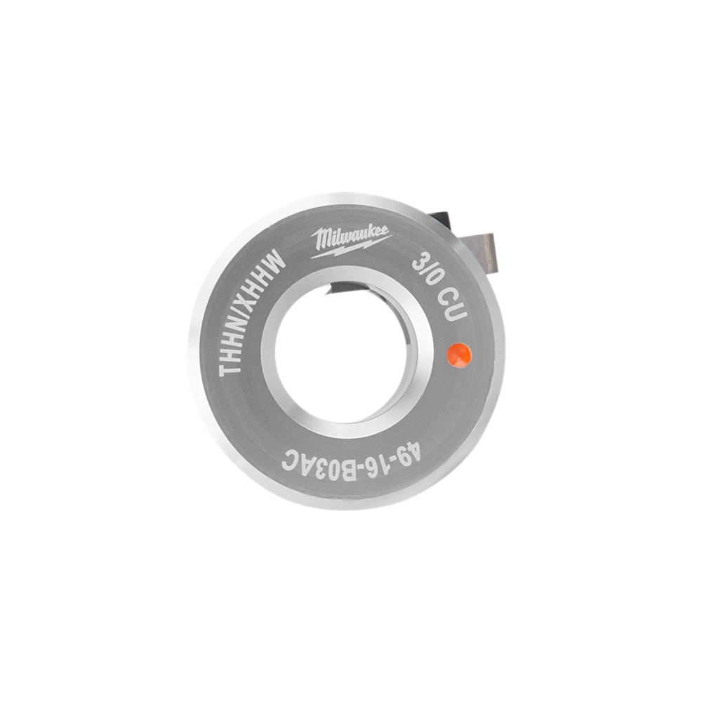 The Milwaukee 49-16-B03AC is a 3/0 AWG copper bushing designed for THHN/XHHW cable. It offers safer and cleaner cable stripping, with an optimized bushing design that prevents nicks. The bushing features clear markings for wire size, material, and jacket type, along with industry-standard color coding for easy identification and selection. Its quick-change system allows for faster stripping across various sizes when used with Milwaukee's M12 and M18 cable strippers.