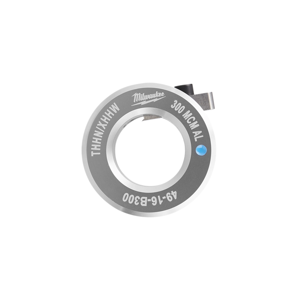 The Milwaukee 49-16-B300 is a 300 MCM aluminum bushing engineered for THHN/XHHW wire. It is designed to provide users with safer and cleaner strips on cables of this specific size. The bushing features industry-standard color coding for easy identification of wire size, along with clear markings for wire size, material, and jacket type. Its quick-change design ensures compatibility with both Milwaukee M18 and M12 cable strippers, allowing for faster stripping operations across various cable sizes and battery platforms.