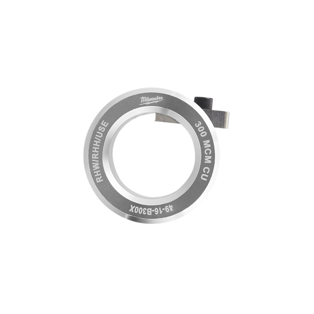 This Milwaukee 49-16-B300X bushing is designed for stripping 300 MCM copper wire with RHW, RHH, and USE insulation types. It is compatible with Milwaukee's M12 and M18 cable strippers, offering a quick-change system for faster wire stripping across different sizes. The optimized design prevents nicks and ensures cleaner strips, while the jacket ejection slot facilitates easy material removal and prevents jams. Each bushing is clearly marked with the wire size and type for easy identification.