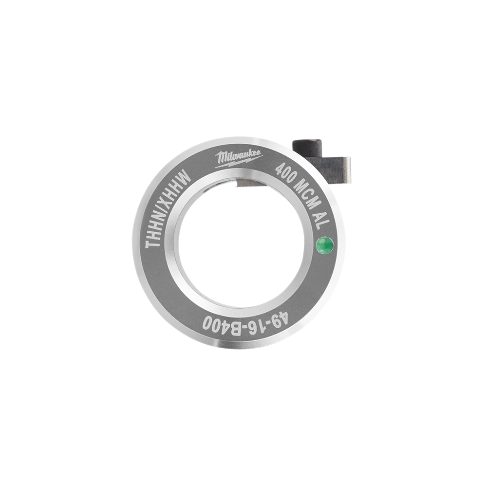 The Milwaukee 49-16-B400 is a specialized bushing designed for stripping 400 MCM Aluminum THHN/XHHW cable. Engineered for use with Milwaukee's M12 and M18 cable strippers, this bushing ensures safer and cleaner strips. Its quick-change system allows for faster operations, while the optimized design prevents nicks and protects against knife injuries. The vivid color-coding and clear wire size markings on each bushing enhance ease of selection and identification.