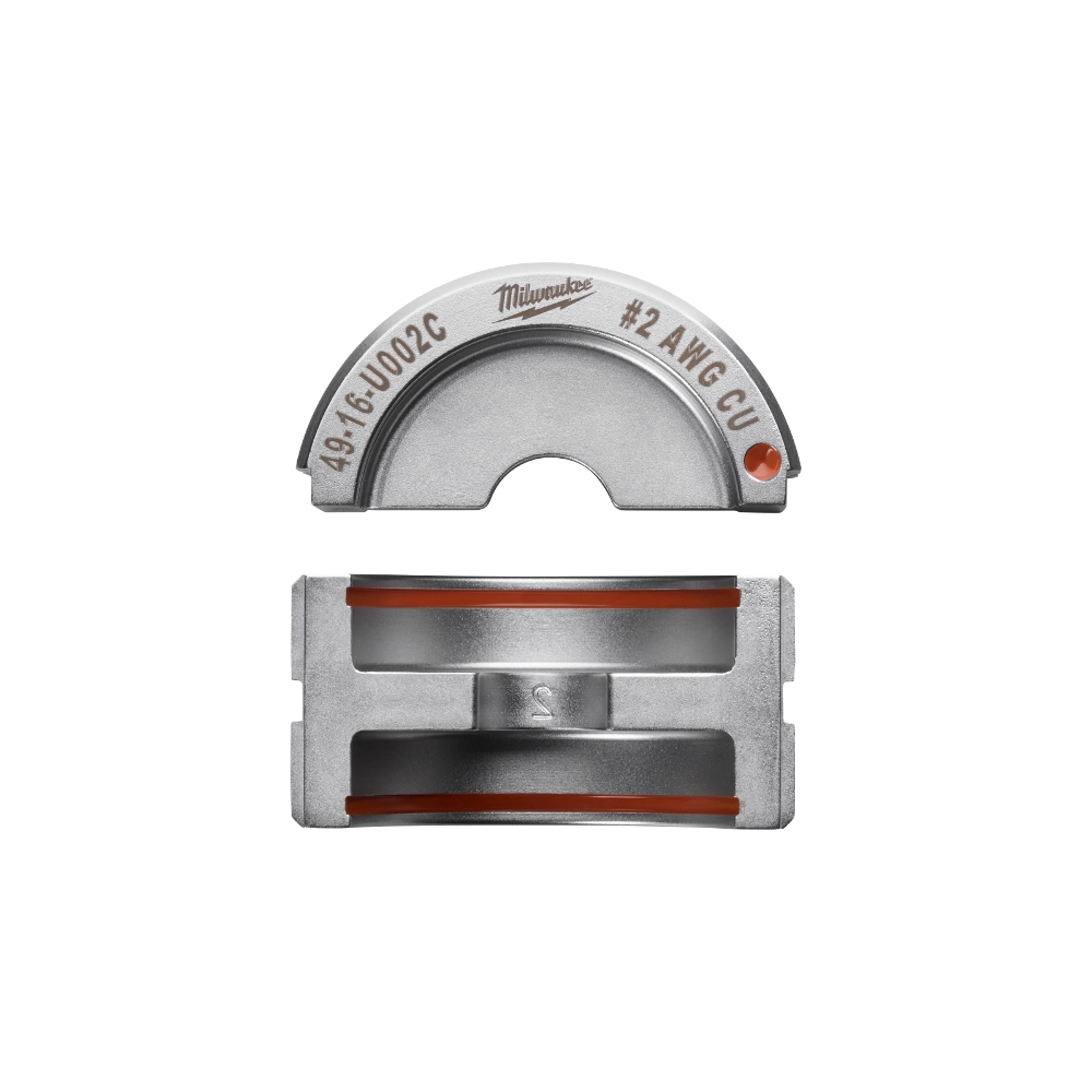The Milwaukee 49-16-U002C is a #2 Copper U Style Die designed for precision and efficiency in electrical wire and cable crimping. It is engineered to work seamlessly with the M18 FORCE LOGIC 600 MCM Crimper, ensuring cULus classified crimps that meet UL 486A-B standards. This die features vivid color coding and imprints the wire size directly onto the connector, simplifying identification and eliminating cross-referencing for commercial electricians. Its robust construction and 100% inspection guarantee reliable and high-quality crimp connections.