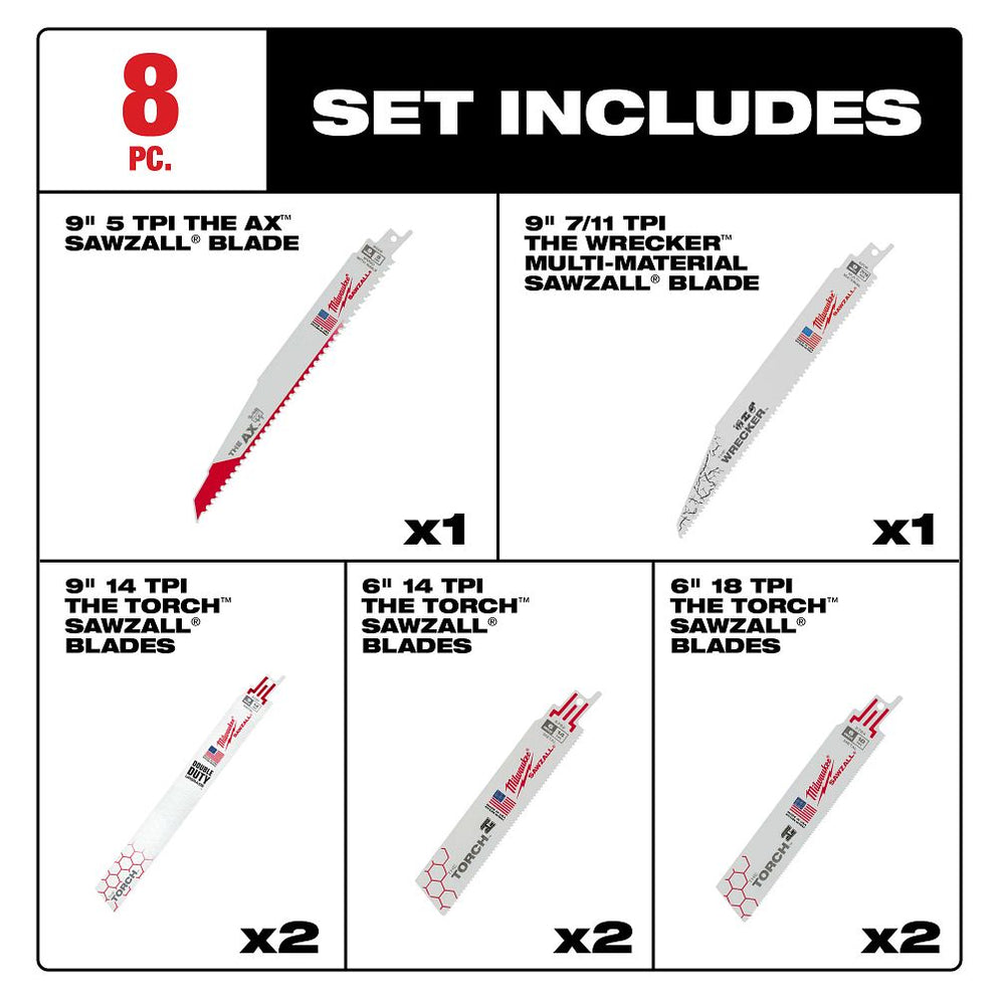 Milwaukee 49-22-1108 8-Piece SAWZALL Demolition Blade Set
