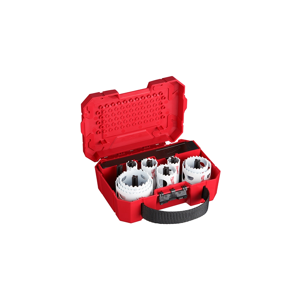 Introducing the Milwaukee 49-22-4029 HOLE DOZER Bi-Metal Hole Saw Kit, a 17-piece set engineered for superior durability and performance. This kit features a new 3.5 TPI tooth design for extended life in metal applications and the industry's only Lifetime Tooth Break Warranty. The innovative ALL-ACCESS SLOTS enhance productivity by allowing for quick plug removal and improved leverage, while the thermoset coating reduces friction for faster cutting and optimized cordless tool efficiency. Designed for general-purpose applications, these hole saws are made in the USA and are built to be the most durable on the market.