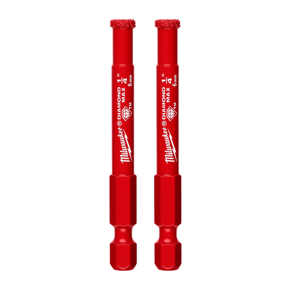 Experience unmatched cutting efficiency with the Milwaukee DIAMOND MAX 1/4' Hole Saw Bits. Engineered for professionals and serious DIYers, these bits deliver up to 10X longer life when cutting tough materials like porcelain, granite, tile, and glass. Featuring higher-grade diamonds and an advanced brazing process, they offer superior heat and fracture resistance, ensuring best-in-class performance and the lowest cost-per-hole. The quick-change hex shank provides a secure connection, while the large slug ejection slot facilitates rapid material removal for faster, cooler operation. This 2-pack ensures you always have a reliable bit on hand for demanding drilling tasks.