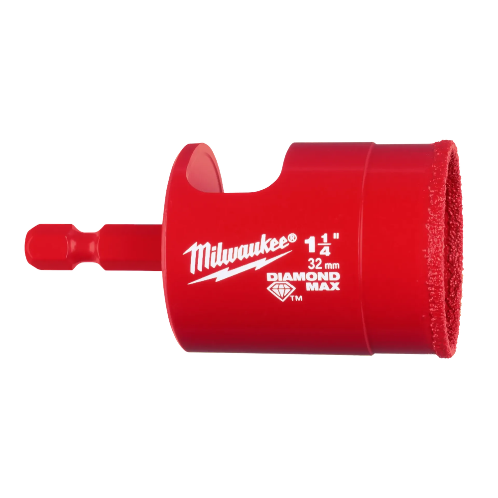 Experience unmatched cutting performance with the Milwaukee 49-56-0519 DIAMOND MAX Hole Saw Bit. Engineered for durability, this 1-1/4' bit delivers up to 20X longer life, making it ideal for demanding applications in porcelain, tile, and stone. Its advanced diamond grit ensures faster starts, cleaner cuts, and reduced clogging, providing a superior cutting experience for professionals.