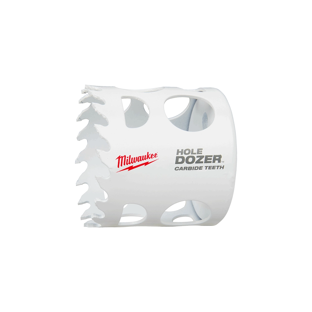 Experience unmatched durability and cutting performance with the Milwaukee 2' HOLE DOZER with Carbide Teeth Hole Saw. Engineered with a robust 3 TPI design, this hole saw delivers fast cuts while offering the longevity of carbide teeth, outperforming traditional bi-metal saws. It excels in general purpose and extreme materials, effortlessly cutting through stainless steel, cast iron, fastener-embedded wood, cement board, fiberglass, and more. Its deep gullets ensure efficient material clearing, while the innovative ALL-ACCESS SLOTS simplify plug removal, maximizing productivity and minimizing downtime. Built for the toughest applications, this hole saw is proudly made in the USA.